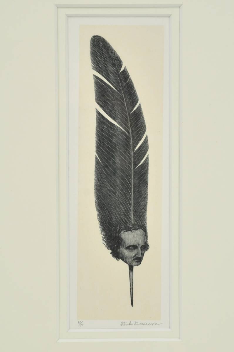 - 【真作】 柄澤齊 小口木版 『肖像 XIII E・A・ポー』 61/70 直筆サイン 額装:47×37cm 03409028-2