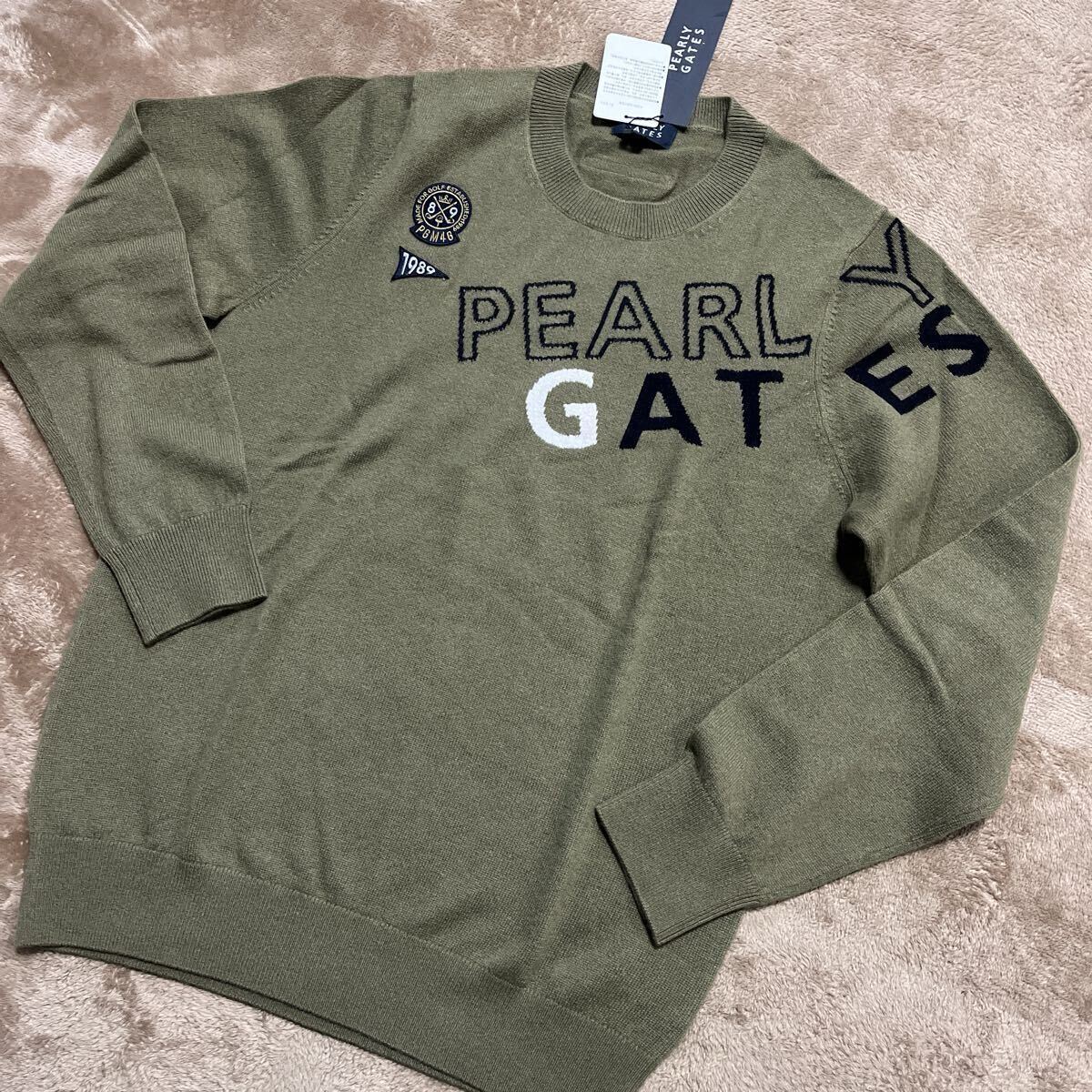 - 新品正規品 パーリーゲイツ サイズ5 カシミヤ100% 丸首 セーター 人気カラー カーキ 暖かい 薄手 送料無料