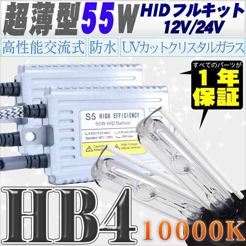 - 高性能 薄型HIDキット 55W HB4 10000K 12V/24V 【交流式バラスト&クリスタルガラスバーナー】