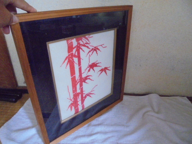- 額入り ビーズ絵/アクリル面額縁/笹竹の絵/ビーズ細工/