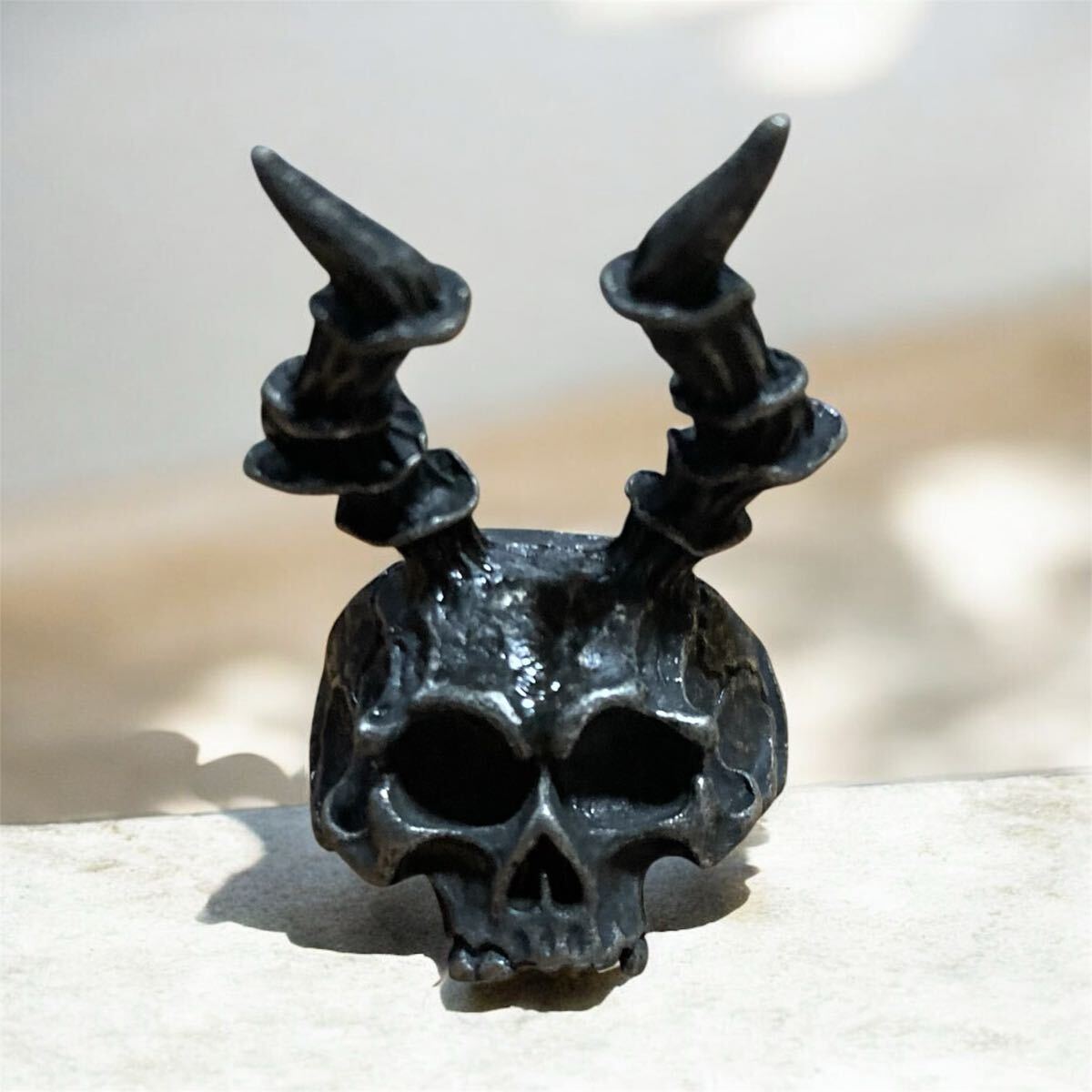 - 【指輪】リング 特大サイズ スカル 骸骨 悪魔 メンズ 無骨 ハロウィン 個性的 置物 オブジェ インテリア イベント ユニーク