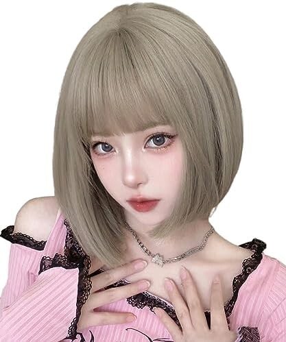 - 【送料無料】AISIQUEENSウィッグ ボブ グレー ショート ストレート フルウィッグ レディース 女装かつら 自然 耐熱