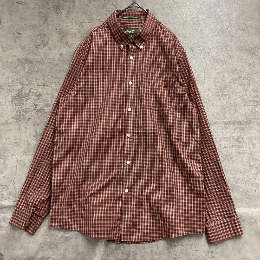 - エディーバウアー 赤チェック柄 長袖シャツ コットン100% L【5990】