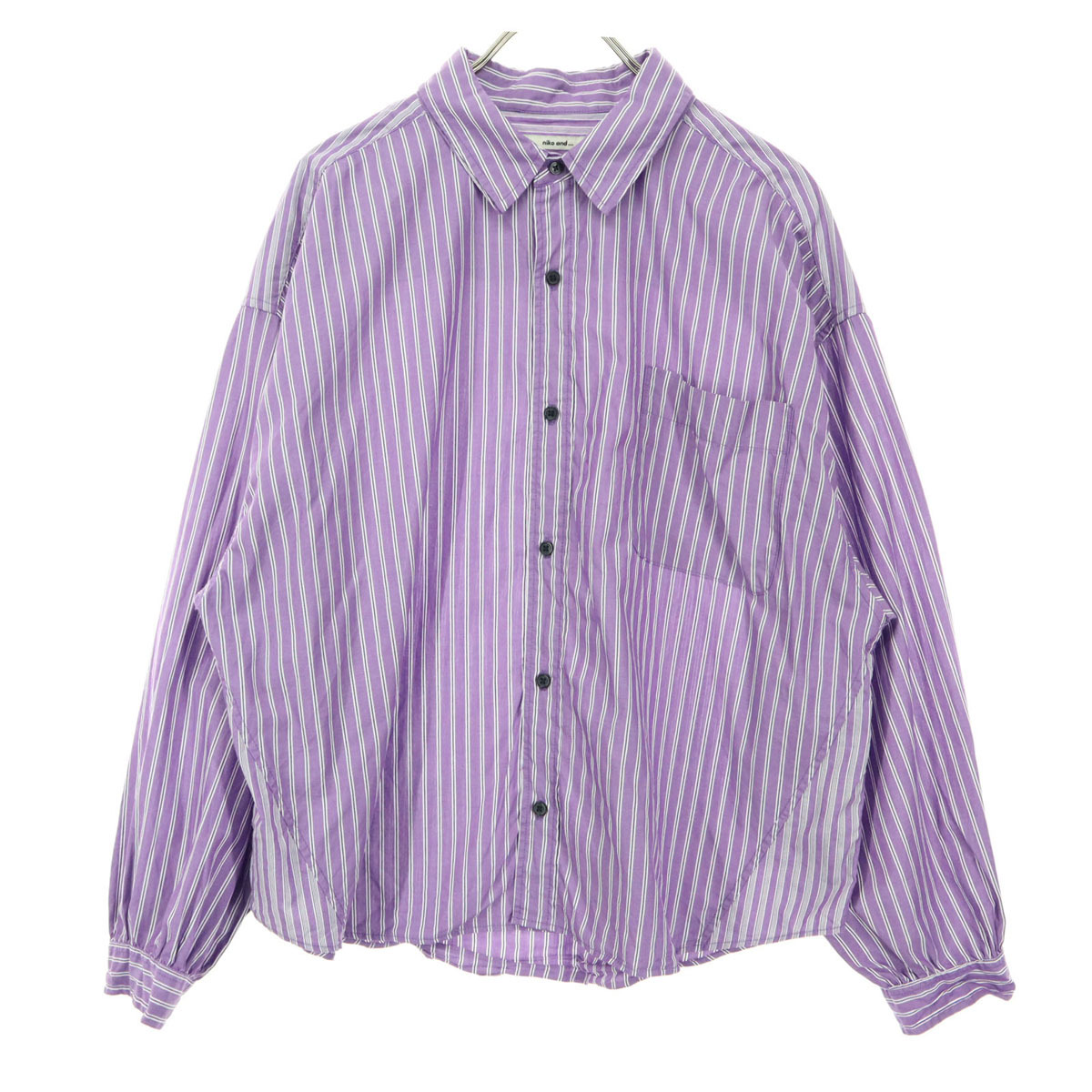 美品 niko and... ニコアンド ストライプ柄 長袖 コットンシャツ short パープル メンズ