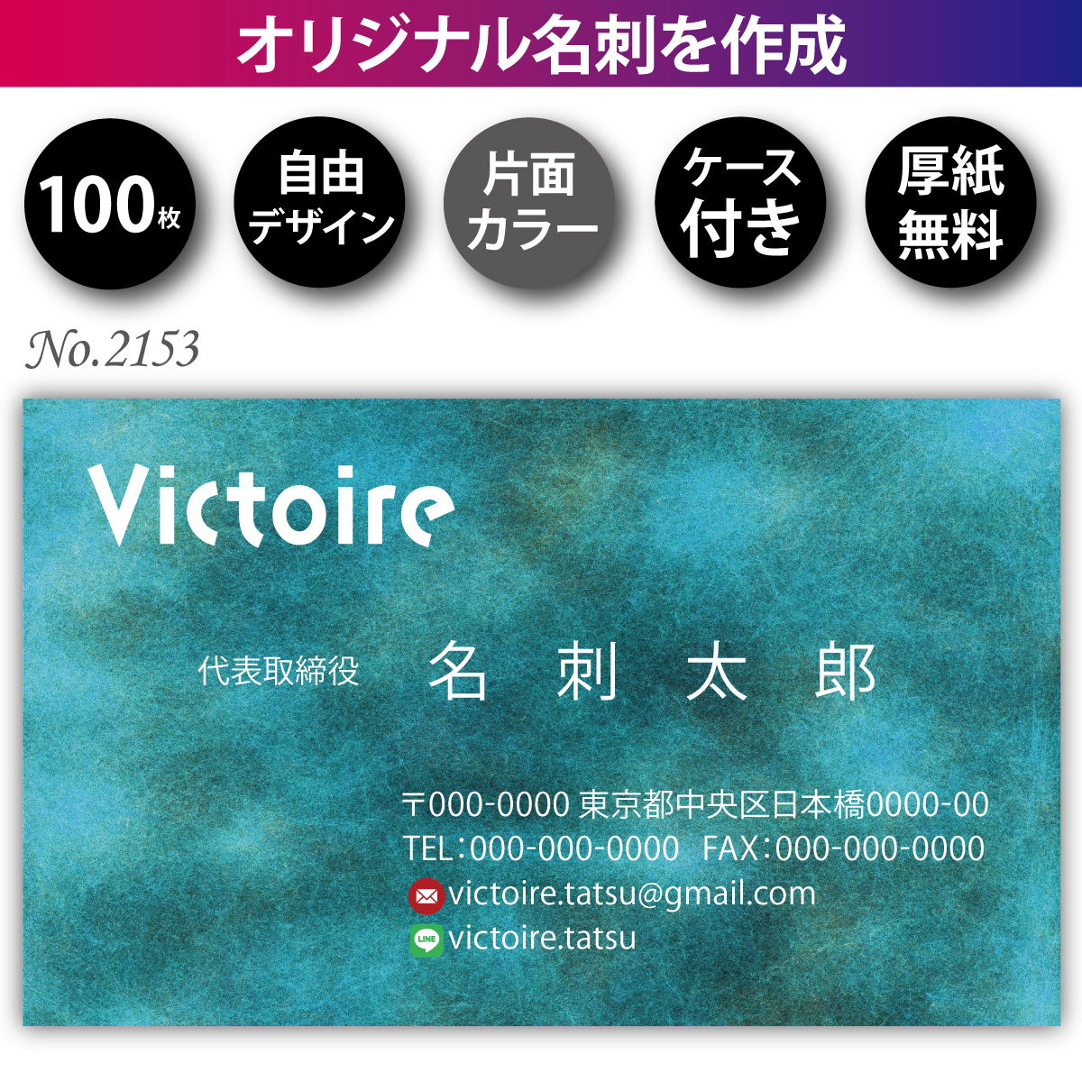 - 名刺 名刺作成 名刺印刷 100枚 片面 フルカラー 紙ケース付 No.2153