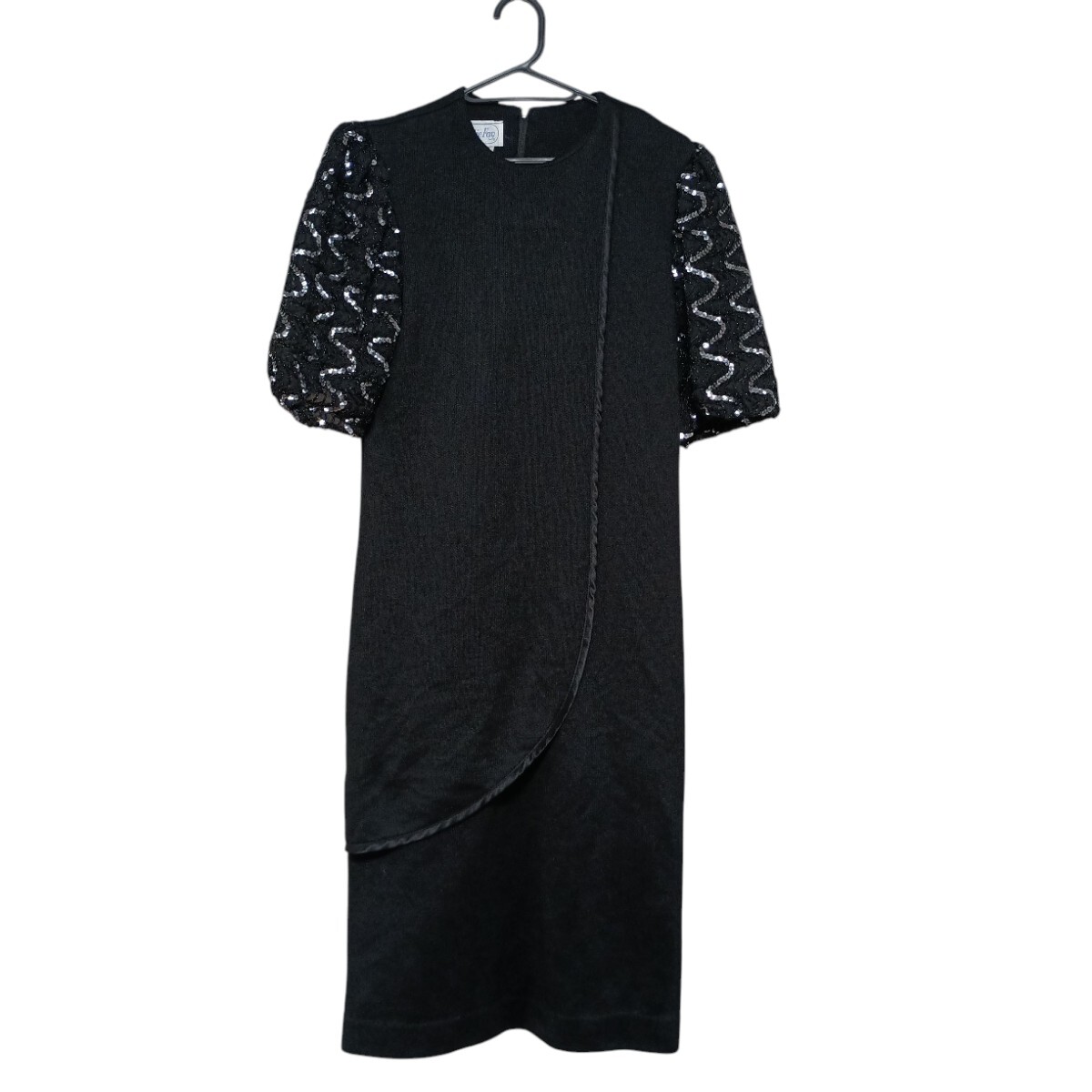 - 美品☆LESLIEFAY☆袖ビーズスパンコール半袖ニットロングワンピース☆ヴィンテージアメリカ古着 ワンピース
