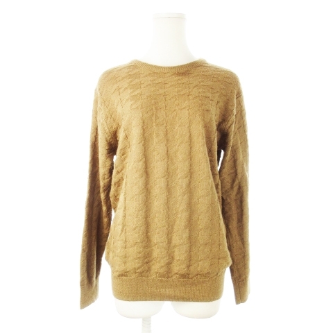 > キャサリンハムネットロンドン KATHARINE HAMNETT LONDON ニット セーター ラウンドネック 長袖 デザイン編み 千鳥格子 M 茶