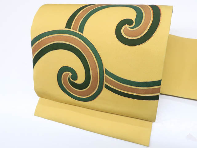 - 《古美術京松》【着物】九寸名古屋帯 太鼓柄 金駒刺繍 渦文 kyo7b04-70