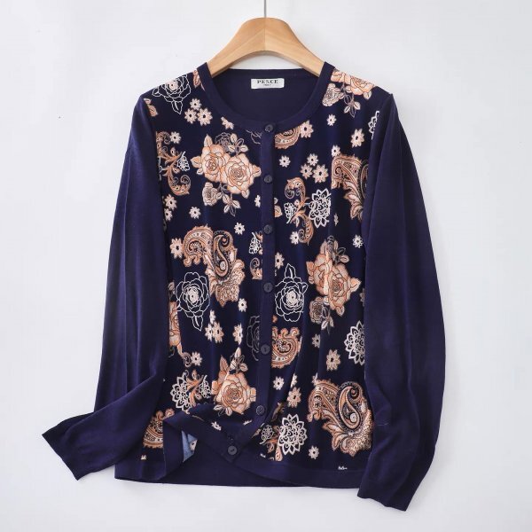 - wnm 綿50%テンセル50% カーディガン 羽織物 アウター チュニック トップス ニット セーター フリーサイズ ゆったり 前身頃花柄生地2