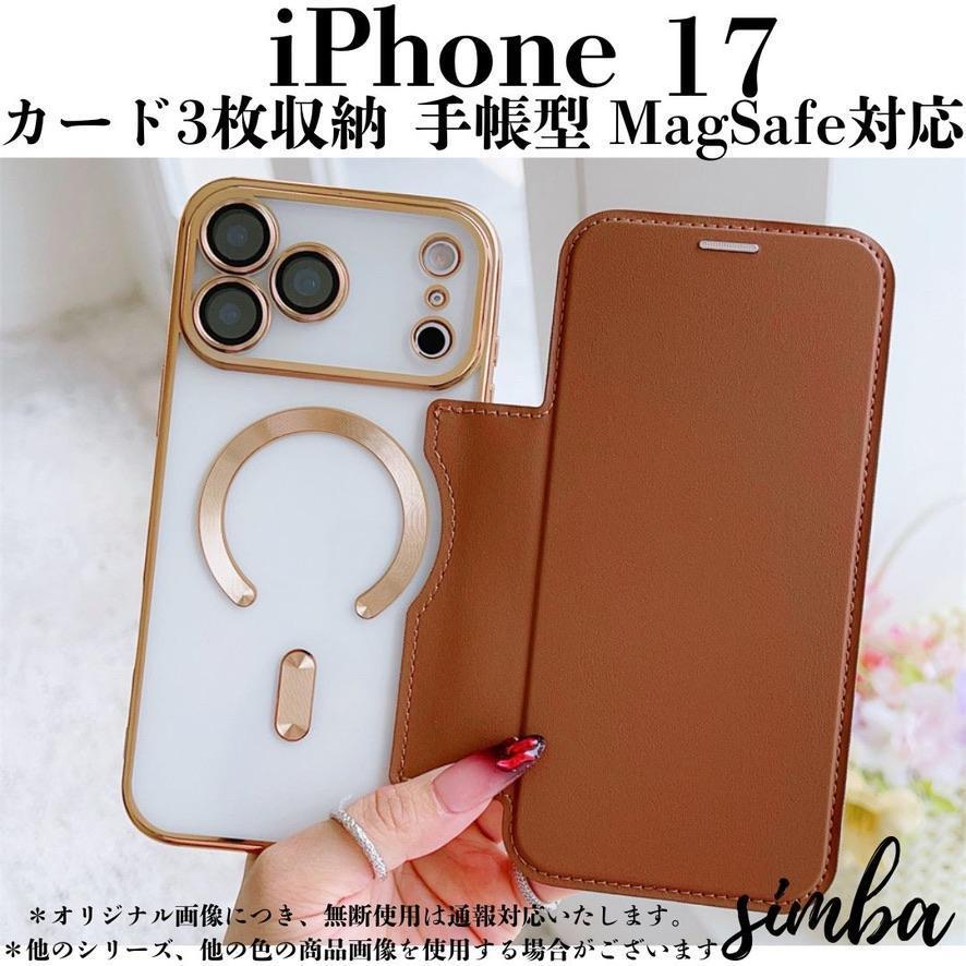 - iPhone 17 ケース 手帳型 カード収納 MagSafe レザー調ブラウン