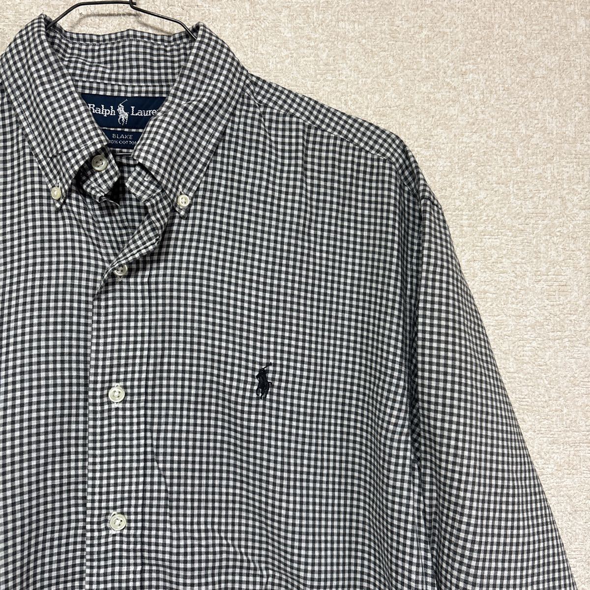 - 【ビッグシルエット】 90s Polo Ralph Lauren ラルフローレン BLAKE チェックシャツ 長袖シャツ メンズM グレー ギンガムチェック