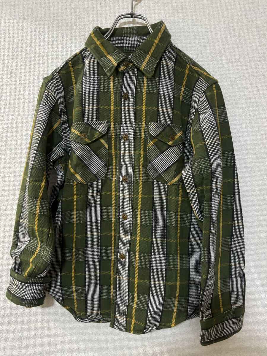 > UES ウエス ヘビー ネルシャツ サイズ1 グリーン イエロー チェック 長袖 綿100% 日本製 WEAR WELL アメカジ 1005