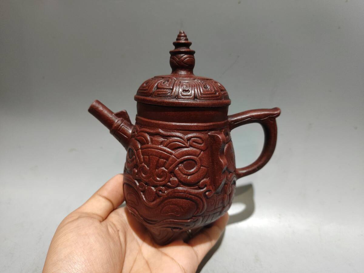 - 『館蔵珍品 紫砂壺 三足鼎立壺 陳鳴遠款 紅泥 紫砂壺 茶具 茶道品』稀少珍蔵品 古賞物 貴重物品 収蔵品 中国古美術 時代物 古董品