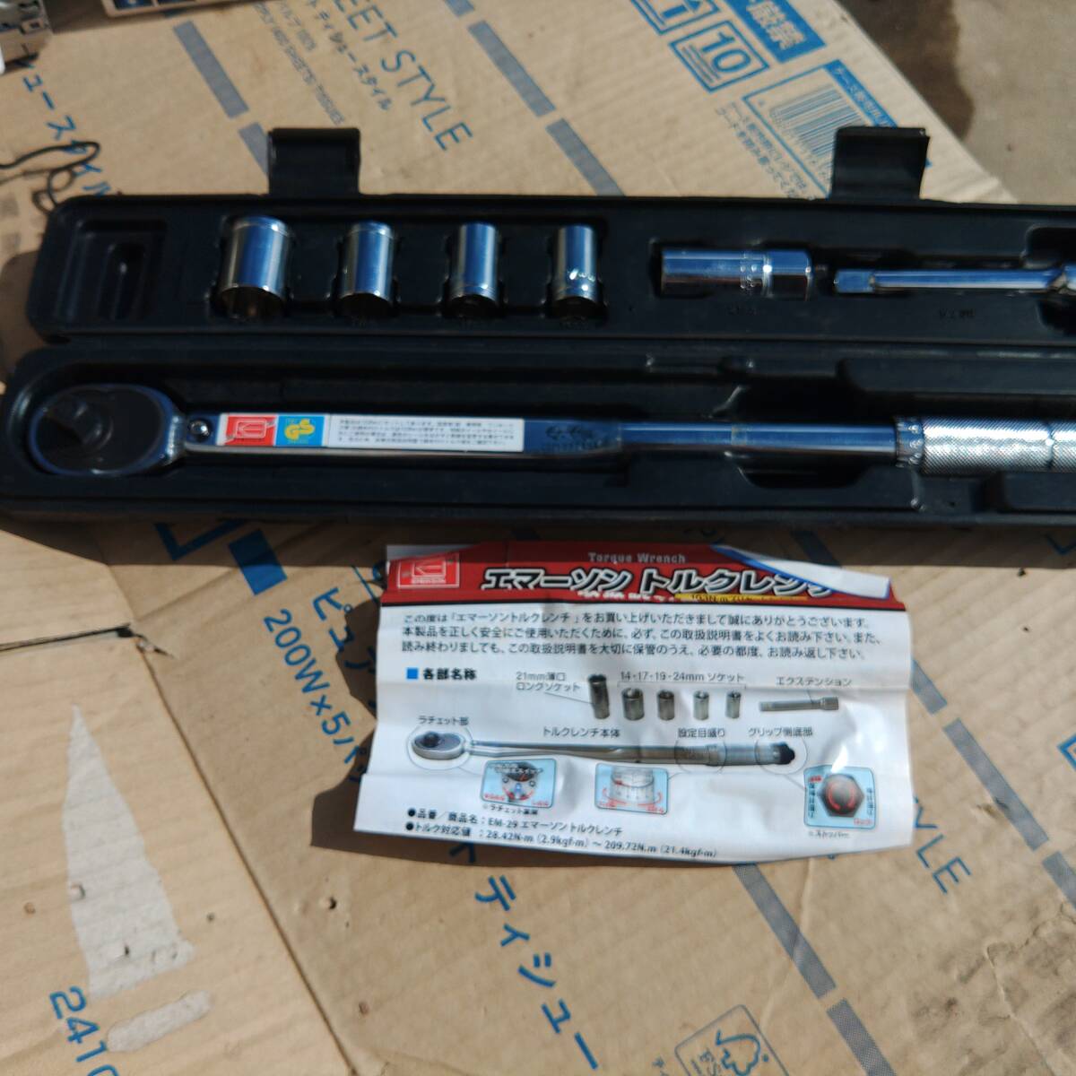 - ほぼ未使用 エマーソン トルクレンチ 計測範囲28Nm-209Nm 測定範囲広い ソケットアダプター、専用ケース付属 バイク自動車整備向け