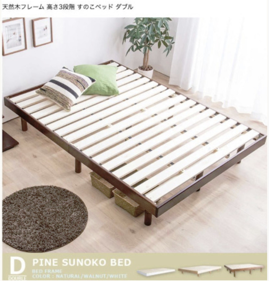 - 【無くなり次第終了】すのこベッド ベッド ダブル 敷布団 頑丈 シンプル ベッド 天然木フレーム ウォルナット