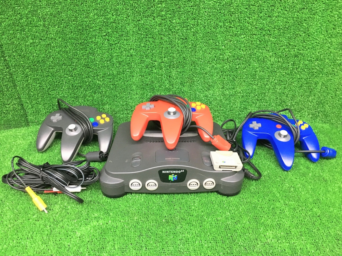> 中古品 Nintendo 任天堂 Nintendo64 NUS-001 ※本体+ACアダブタ+AVケーブル+コントローラー3個セット ニンテンドー64