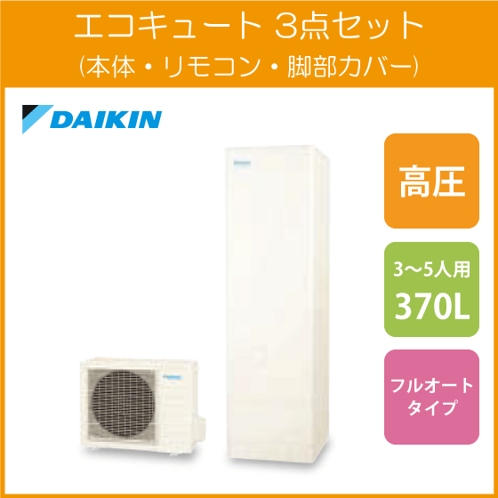 > エコキュート(高圧給湯) Nシリーズ フルオートタイプ 3点(本体・脚部カバー・リモコン)セット 角型 一般地仕様 370L EQN37YFV ダイキン