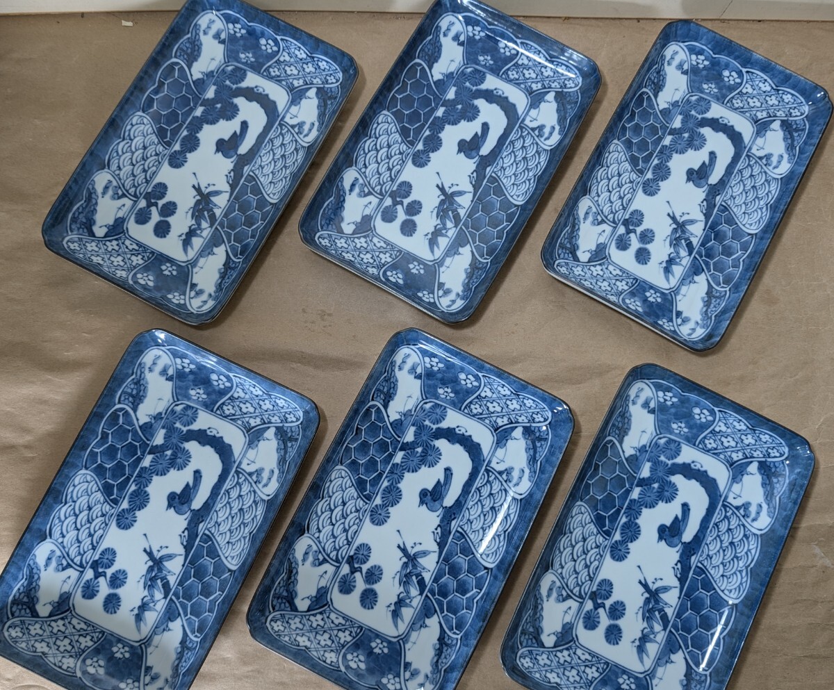- 仁祥窯 捻り祥瑞 花鳥 焼物皿 6枚 未使用 〔まとめて取引がお得⇒追加送料無し〕/長角皿/お寿司皿/刺身皿/和食器/陶磁器/