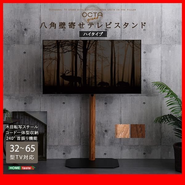 - テレビ台★新品/木目が美しい八角壁寄せテレビスタンド ハイタイプ/32~65型 コード収納 首振り/木目調 シャビーオーク ウォールナット/zz