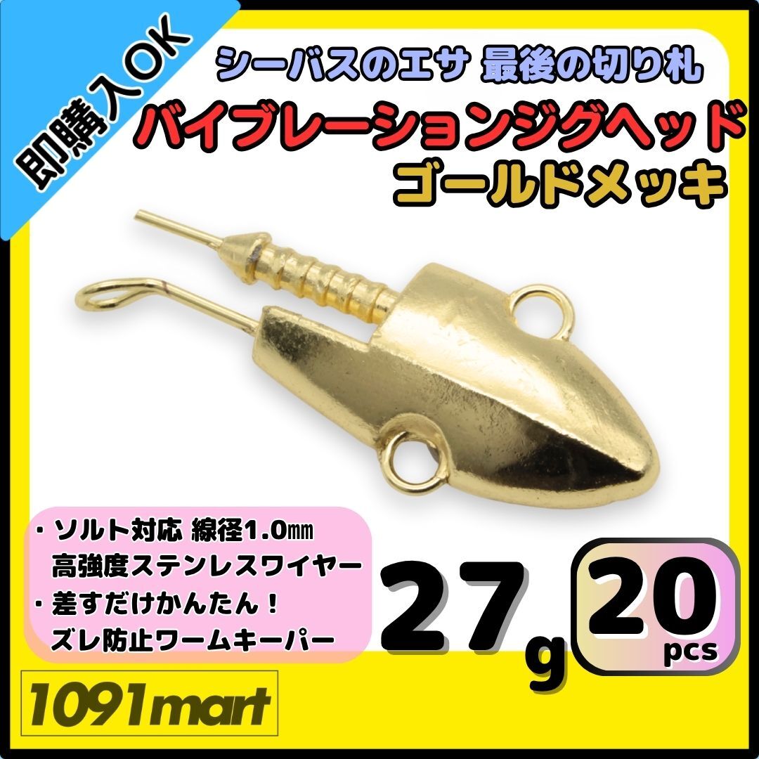 - 【送料無料】バイブレーションジグヘッド ゴールドメッキ仕様 27g 20個セット スイミングジグヘッド VJ風 シーバスルアー ワーム