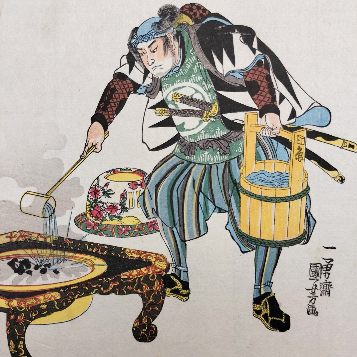 - 江戸期/真作 歌川国芳「誠忠義士伝 寺岡平右衛門信行」本物浮世絵木版画 武者絵 錦絵 中判 保存良い