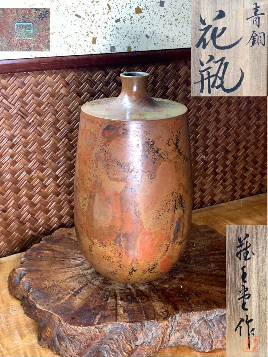 - 時代物 青銅 花瓶 共箱 在銘 良品 茶道具 華道具 花器 花生 花入 壷 和美術 和骨董 ブロンズ 骨董 古玩 煎茶器 煎茶道具 懐石道具 古美術