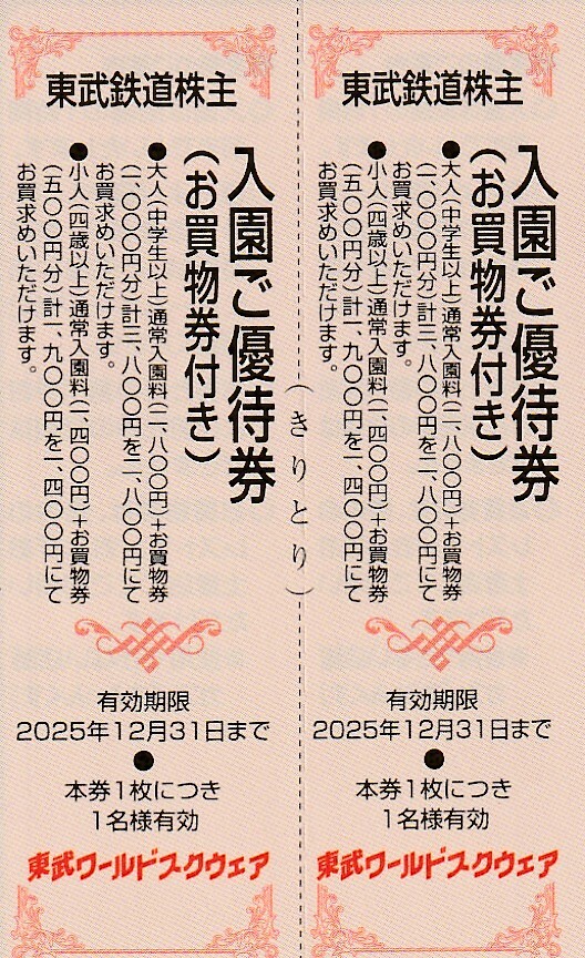 - 東武鉄道★株主優待券★東武ワールドスクウェア★ご優待割引券★2枚セット★即決
