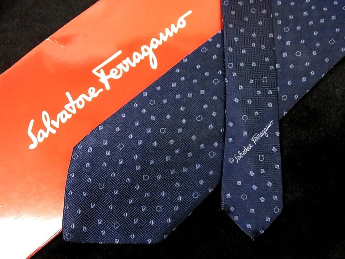 - 5G0681【超特売】フェラガモ【人気のΩ総ロゴΩ「ガンチーニ」】ネクタイ