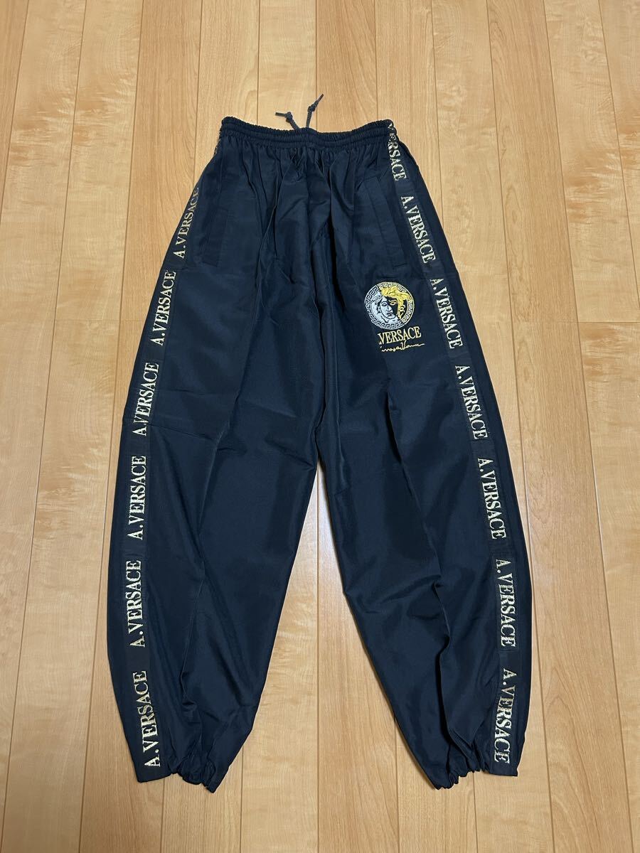 - ☆90s-Y2K・AV/A.VERSACE メンズサイズM大き目 裏メッシュ.ブラックナイロンジョガージャージパンツ メデューサ刺繍&サイドロゴライン 黒