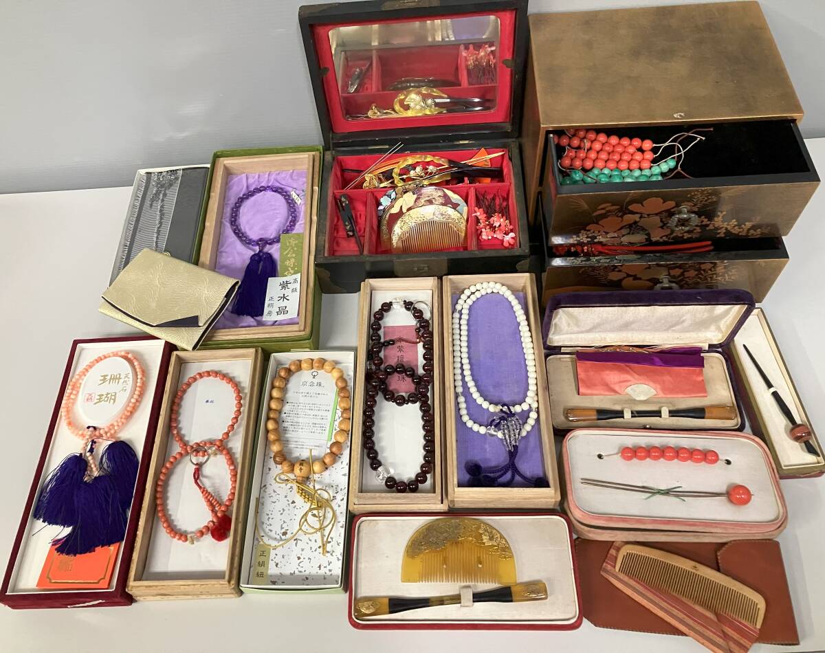 - ★格安売切★根掛け 数珠 簪 かんざし 念珠 和装小物 大量 まとめ売り 髪飾り 珊瑚 着物 冠婚葬祭 葬儀 ケース 中古品 現状渡し