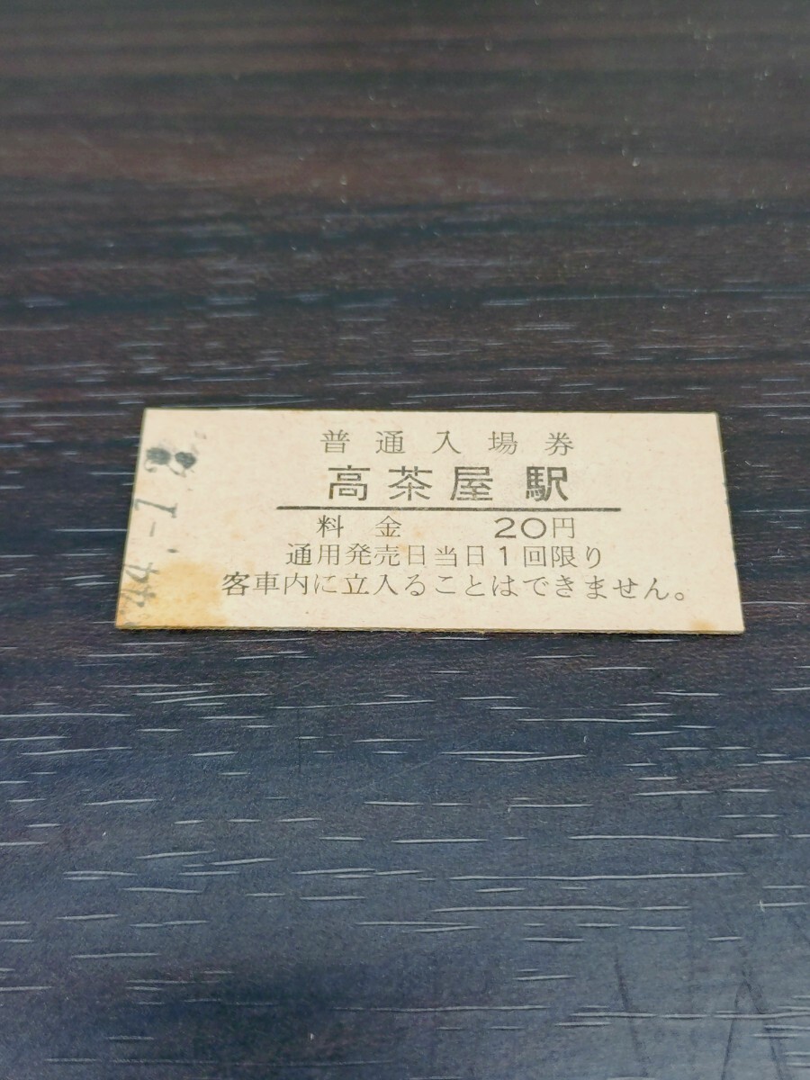 - 国鉄 硬券 普通入場券 高茶屋駅 昭和44年