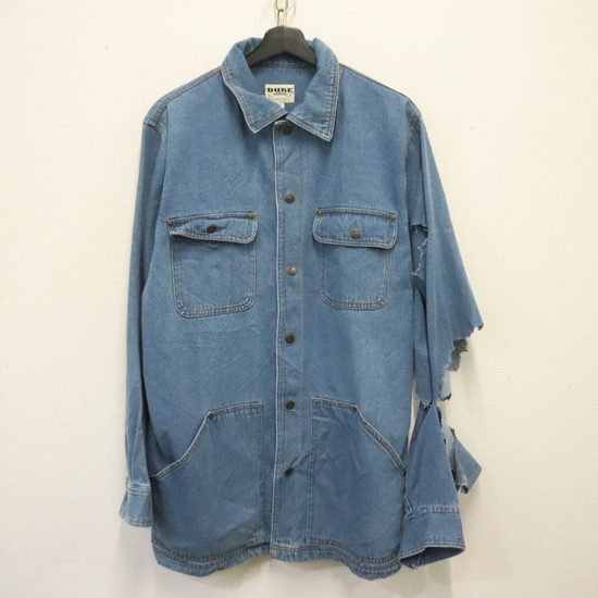 > R766 2000年代製 DUKE 長袖デニムジャケット■00s 表記Lサイズ ブルー カバーオール 無地 アメカジ ストリート 古着 激安 ヴィンテージ