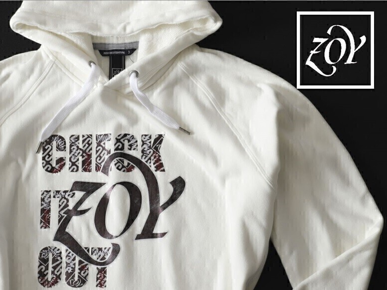 - 1円★ZOY ゾーイ★MENS BOMBER HEAT BIGロゴ プルオーバーフーディー★サイズ3【071414025】ホワイト白【本物保証】裏起毛★防寒モデル