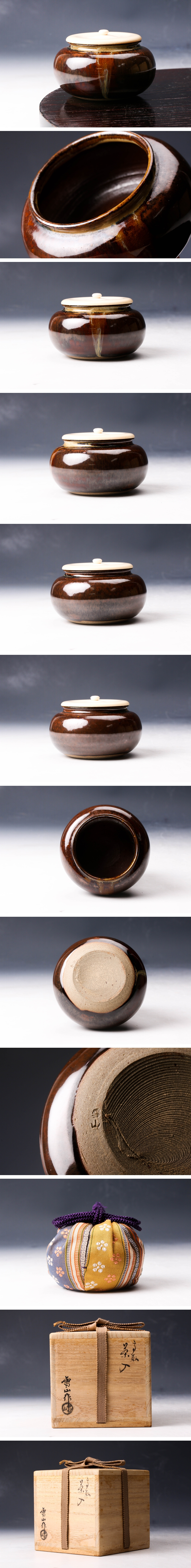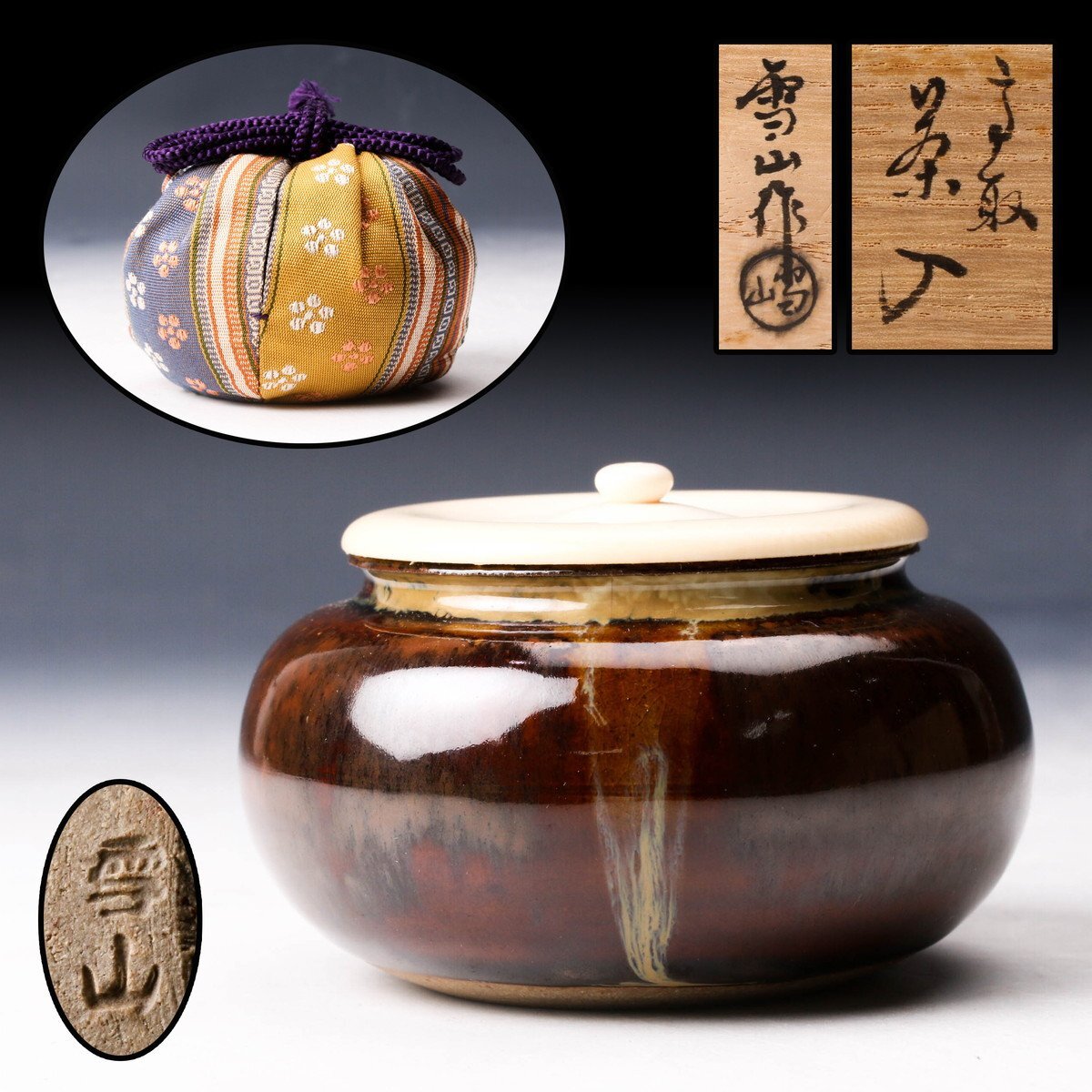 - 【佳香】鬼丸雪山 高取大海茶入 共箱 仕覆(薩摩間道) 茶道具 本物保証