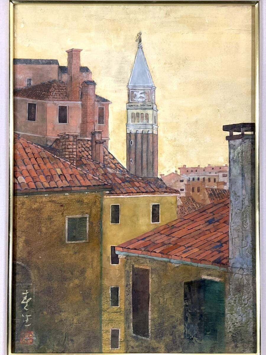 真作■油彩■飯田春生■『ヴェネチアの塔』■丁寧に描かれた逸品■額付絵画 9c拍卖