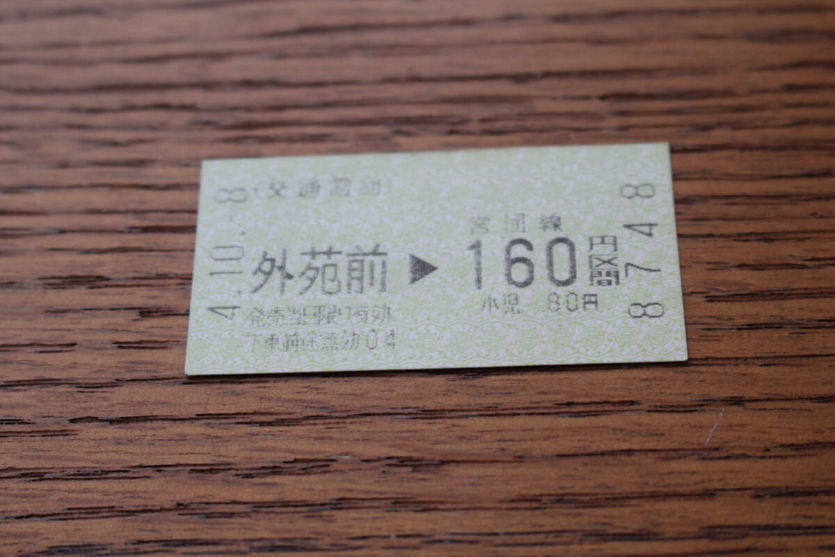 - 切符 外苑前 平成4年 営団線 軟券 乗車券 電車 鉄道 160円区間