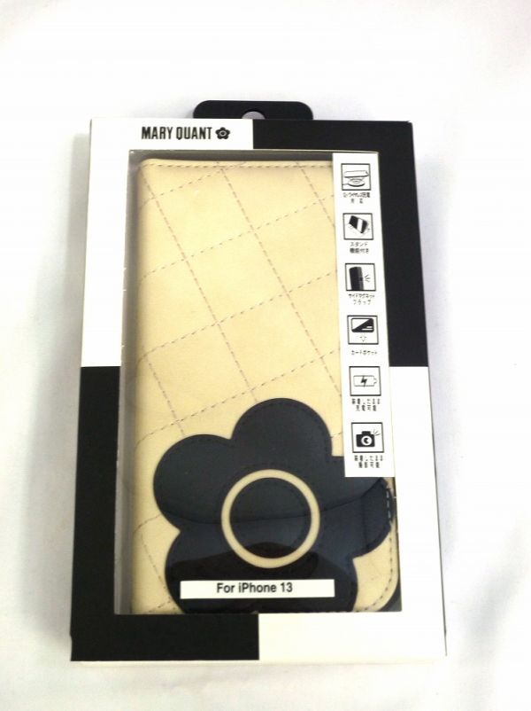- 20263☆未開封品☆ MARY QUANT iPhone13用 ケース [IVORY/BLACK] IP13-MQ07 手帳型 スタンド機能 カードポケット ワイヤレス充電対応