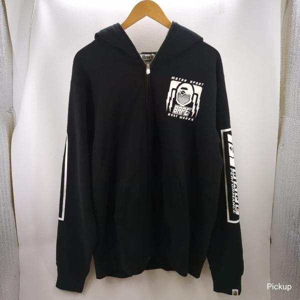> 【美品】A BATHING APE アベイシングエイプ メンズ ブラック 2XL 未使用品 MOTOR SPORT FULL ZIP HOODIE モータースポーツ ◆2003