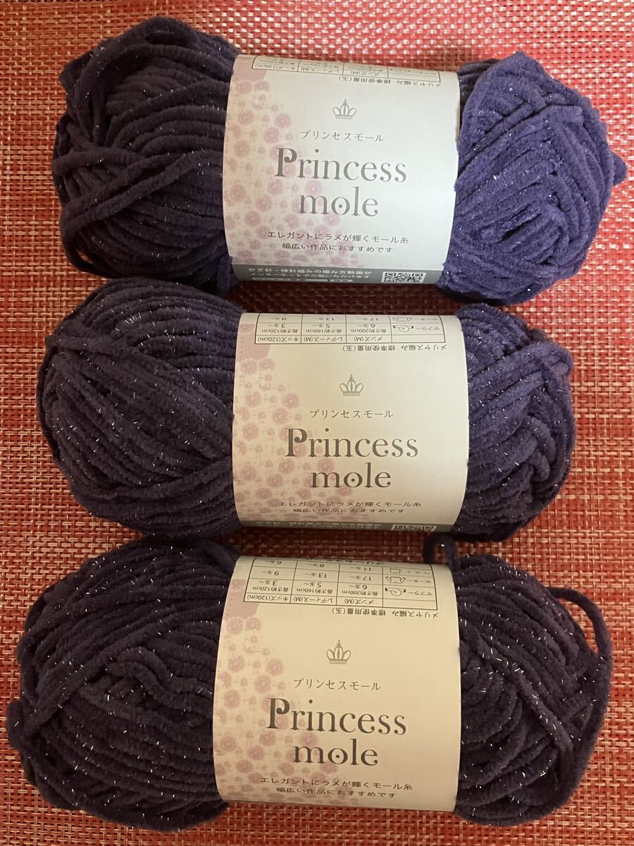 > seriaセリア★プリンセスモール 毛糸 3玉セット(COL No.6 LOT No.25F)同ロット★紫・パープル・Princess mole・モール糸・ごしょう産業