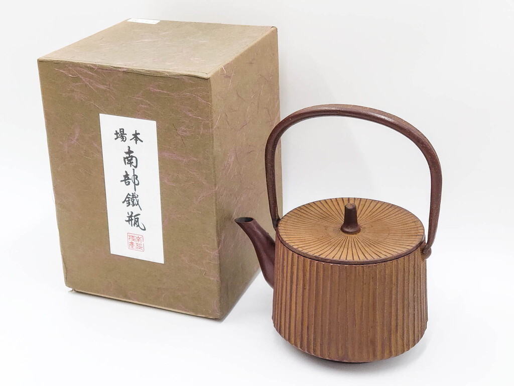 - R-084623 南部鉄器 伝統工芸士 現代の名工 佐藤勝久 利休型 蛇ノ目 鉄瓶(湯沸、湯瓶、茶道具、茶器、箱付)