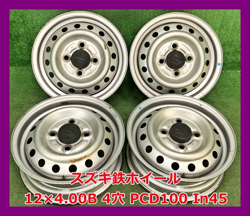 - ★12インチ 中古 スズキ鉄ホイール 4本 4穴 PCD100 In45 ハブ54mm★