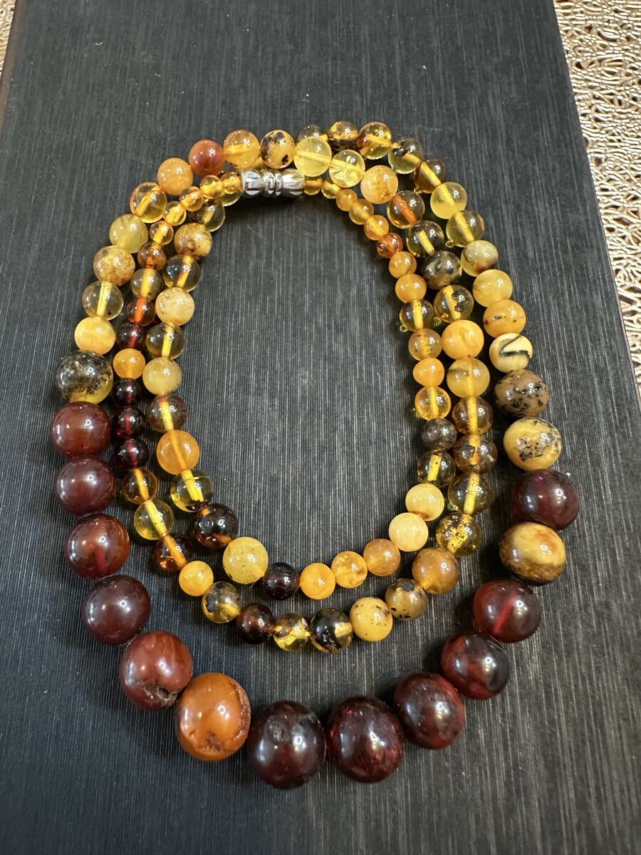 - K-725 天然 アンバー 本琥珀 蜜蝋 ネックレス 天然保証