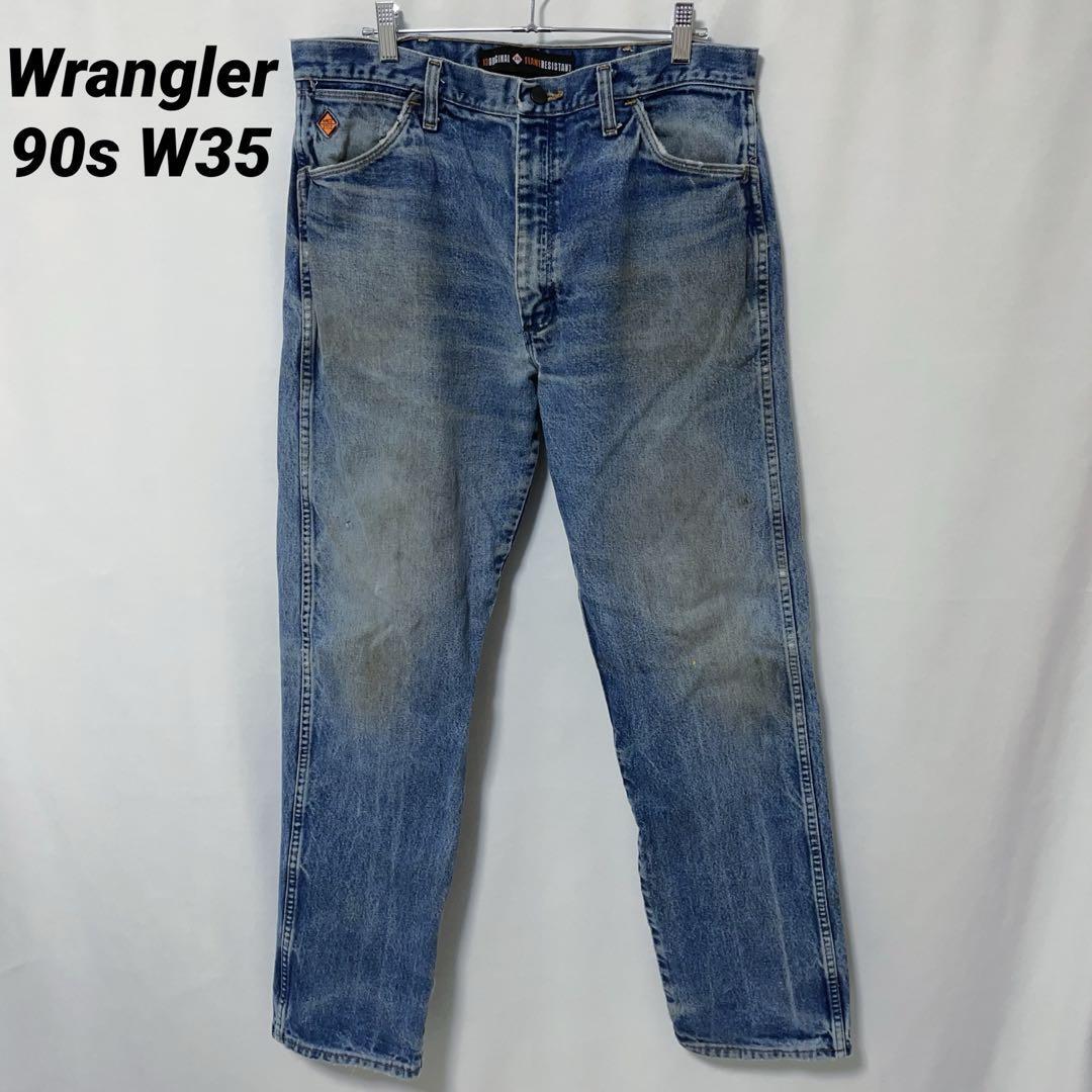> B-1067 90s Wrangler ラングラー W35 FR13MWZ ストレート デニム ジーンズ ジーパン フェード グランジ ヴィンテージ 難燃