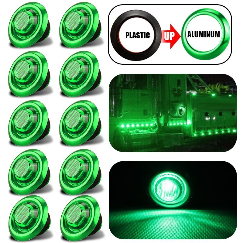 - 10個セット 車用 サイドライト 円形 LED ミニライト 補助ライト 3cm グリーン 緑 12-24V アルミニウム 金属 カーライト 配線付き t8881
