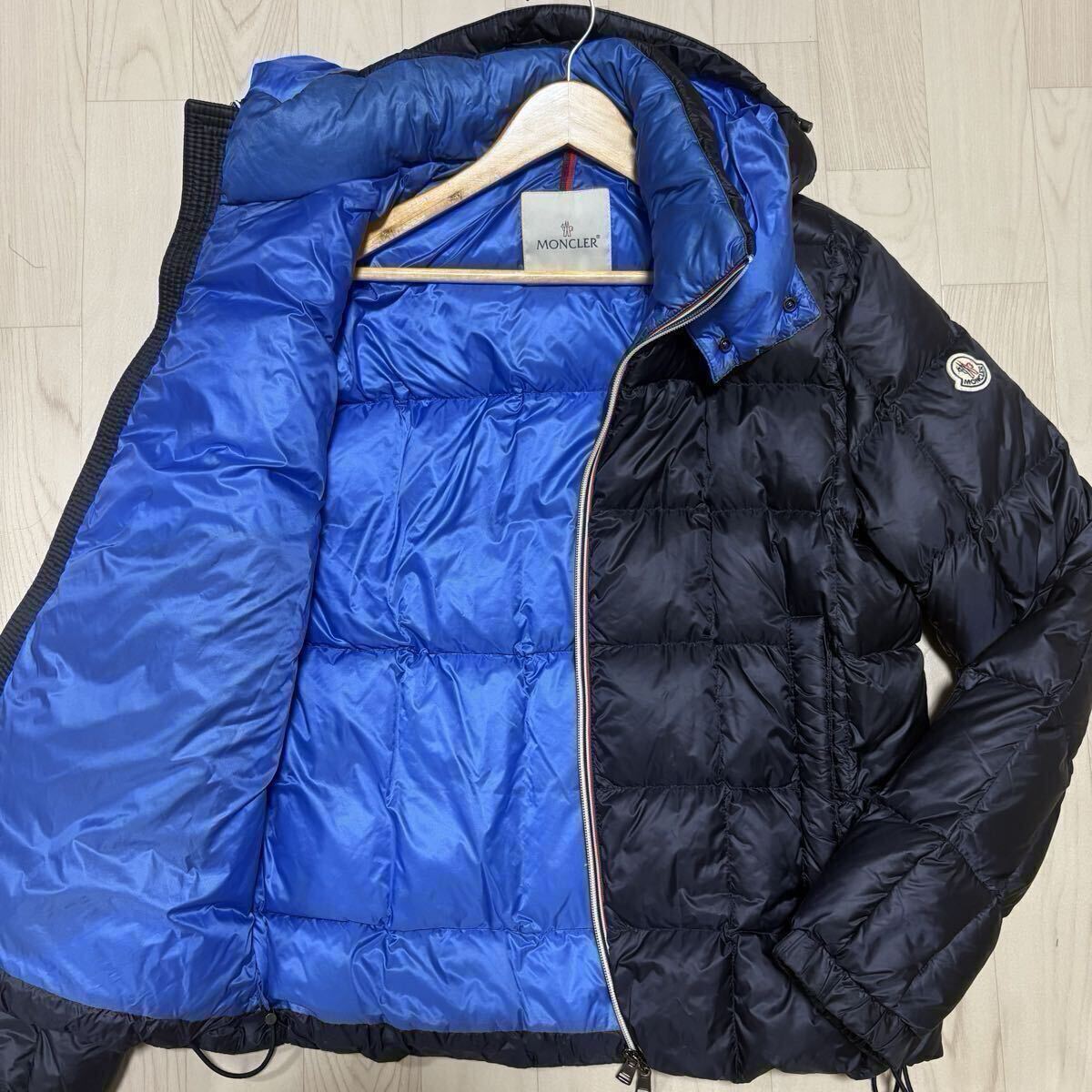> 極美品/Lサイズ◎ MONCLER モンクレール LEFRANC ルフラン キルティング ダウンジャケット パーカー 着脱フード Wジップ ネイビー メンズ 3