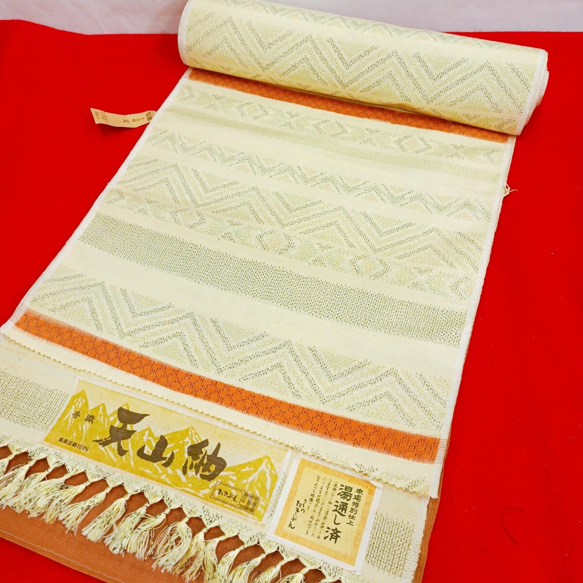 > h-2 手織 天山紬 反物 着物 生地 正絹 紬 着尺 未仕立て 織物 高級 上質 たきぶん