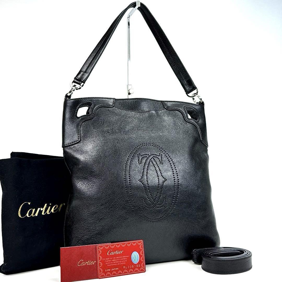 > 極美品 Cartier カルティエ マルチェロ 2way ショルダーバッグ ハンドバッグ トート マストライン パンチング チャーム レザー 黒 男女兼用