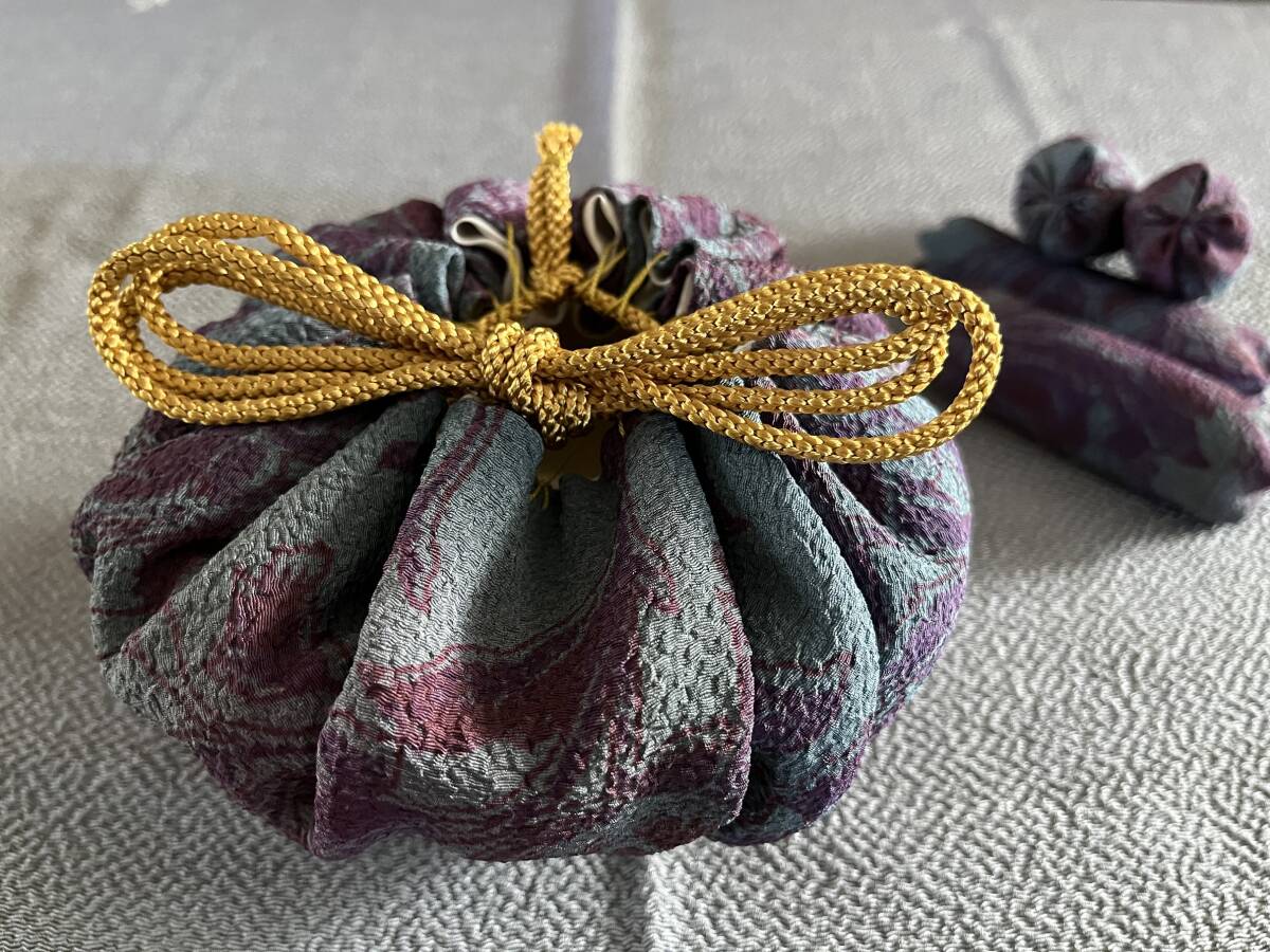 > 手作り茶道具 ☆御物袋 ごもつ 御仕覆 お仕服 おしふく ☆ ちりめん 舛花色・暗紅色 ぐるり36 柱4本ともに