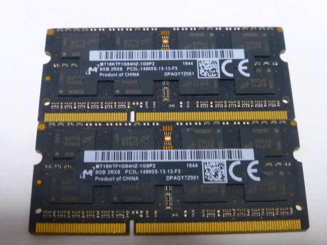 > ノートパソコン用メモリ 両面チップ Micron 低電圧 1.35V DDR3L-1866 PC3L-14900S 8GBx2枚 合計16GB 起動確認済みです④