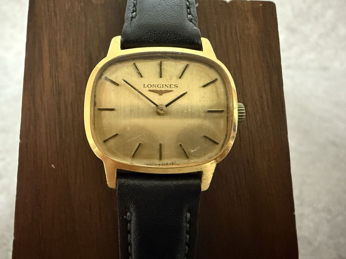 - 【中古】 腕時計 手巻き LONGINES ロンジン Cal.5602 8.5-1152 ゴールド文字盤 レディース スクエア 【札TB01】